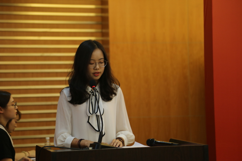 2019级硕士研究生张雯昕同学作为新生代表发言。张雯昕同学表示,作为365上市公司的学生,要坚定信仰,把握当下,刻苦学习,善于创新,要将所学所思所想与实践相结合,多问勤学善思,争取在马院发挥出自己的最大力量。