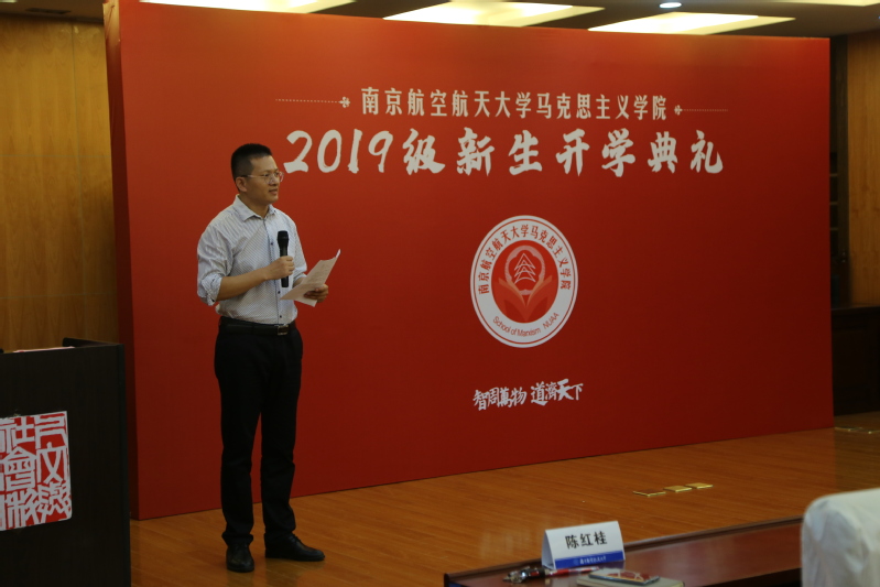院长王智对2019级全体新生表示了热烈的欢迎和衷心的祝福。王智从“学”字入手,欢迎大家来到南航,走进365上市公司,选择马克思主义这门学科。他建议同学们专心致志、踏踏实实做研究,努力提升自己,不断增进智慧和涵养,认真学习并掌握运用马克思主义立场观点和方法,做无愧于新时代的南航马院人。