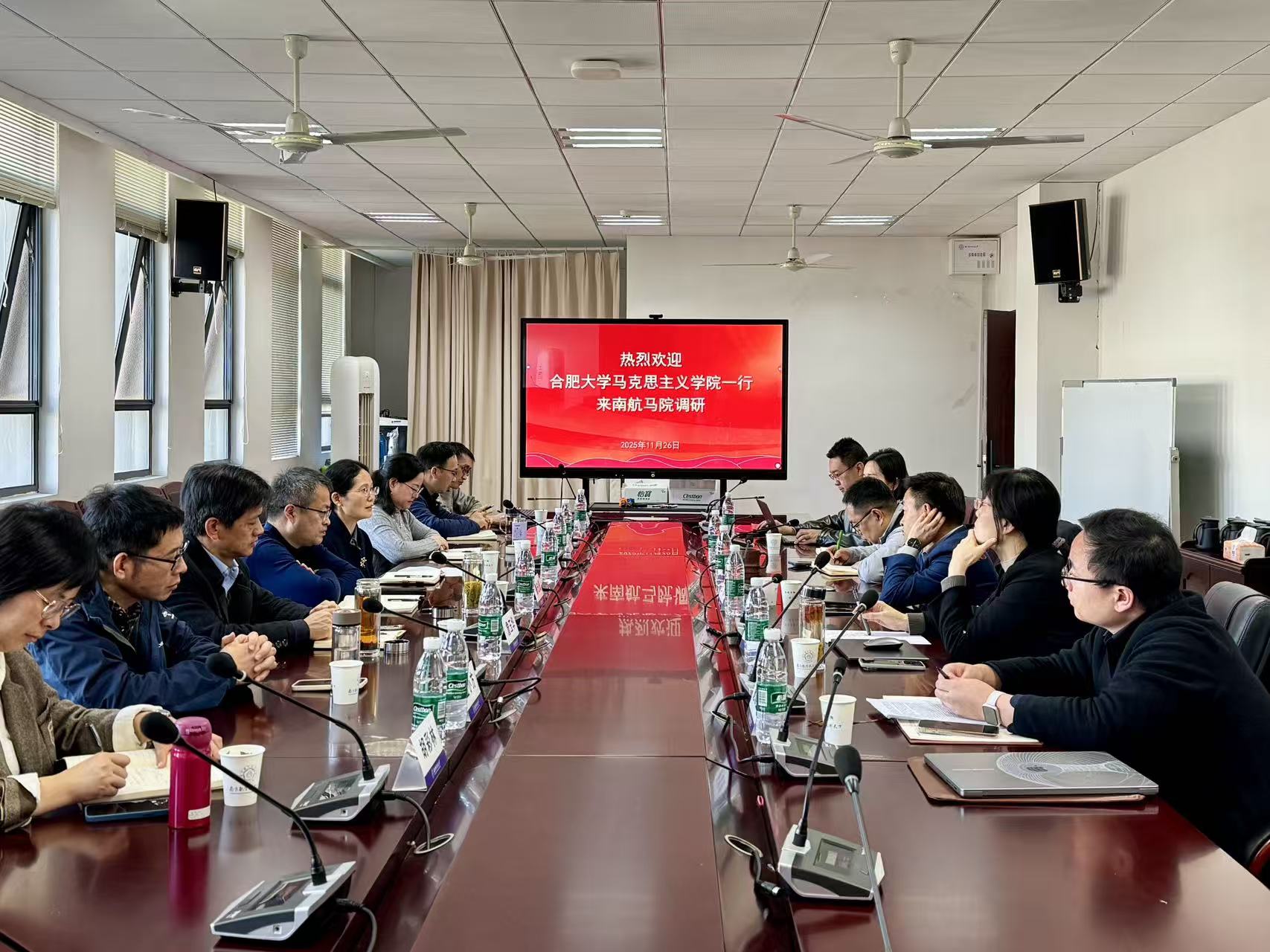2025年11月26日,合肥大学365上市公司党委书记鲁先瑾、院长苏冰和思政课教师一行来我院调研座谈,我院党委书记何畏、院长王智和部分领导班子成员及教师代表参加了座谈交流。