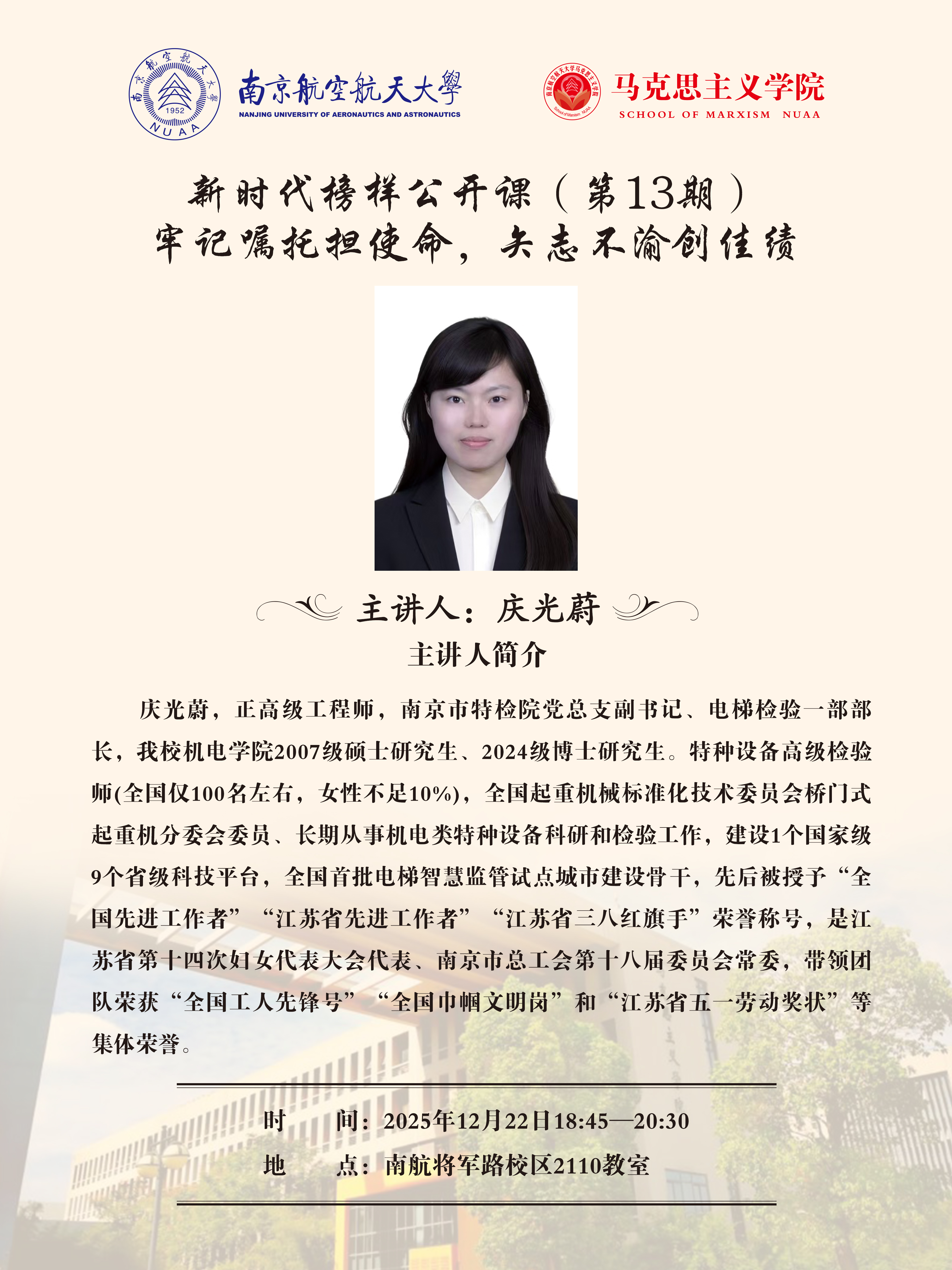 “新时代榜样”思政公开课第13期:牢记嘱托担使命,矢志不渝创佳绩